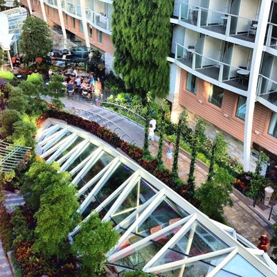 Allure of the Seas is our number one choice! My husband likes it because it has TWO Flowriders. I like it because it has over 25 dining options! The Allure is the largest ship in the world. It’s 1,187 feet long and has 7,000 people on board. A floating city doesn’t sound like a cozy getaway but we never feel lost in the crowd. The ship is cleverly designed with large open areas like Central Park but maintains small secluded spaces for personal solitude.