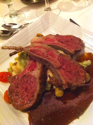 Chilled lobster, scallop and shrimp salad with campari grapefruit jelly, crispy baby lettuces paired with Sauvignon Blanc 2012, Kim Crawford, Marlborough – New Zealand. Cool refreshing starter, I’m always encouraging folks to add crunch, color and flavor to their dishes and this had it all.