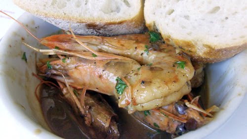 BBQ shrimp in worcestershire sauce with crusty bread