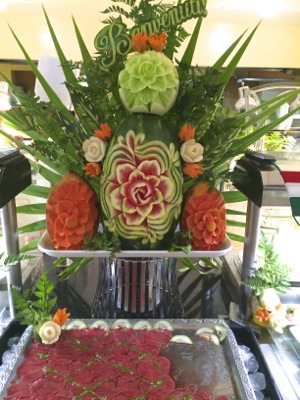 I couldn’t stop taking photos of the beautiful intricate carved fruit and vegetables. It’s definitely an art form very prevalent in Thailand and Southeast Asia. I must say they made the food look ever so appealing.