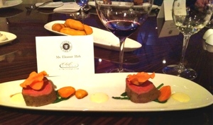 Seared Beef Tenderloin with Horseradish cream, caramelized Turnips and Spinach puree paired with Malbec 2010, Salentein “Numina” Mendoza, Argentina. It’s interesting to see how western cuisine’s use of sauce to flavor meat which is cooked naked whereas in Asia, we usually marinade our meat prior to cooking whether it’s a stir fry, a stew or even deep fried.