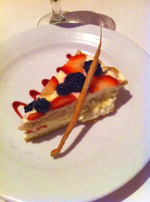 Pan Roasted Black Cod with Sauteed King Oyster Mushrooms on a Bed of Baby Green Lentils, Celery Cream with a Madeira Truffle Reduction paired with Chardonnay, 2011, Rombauer, Carneros, California. This was my favorite dish, the cod was perfect and creamy. Great to see there were sauteed mushrooms (saute means stir fry to me, yay) which I think went very well with this dish.
